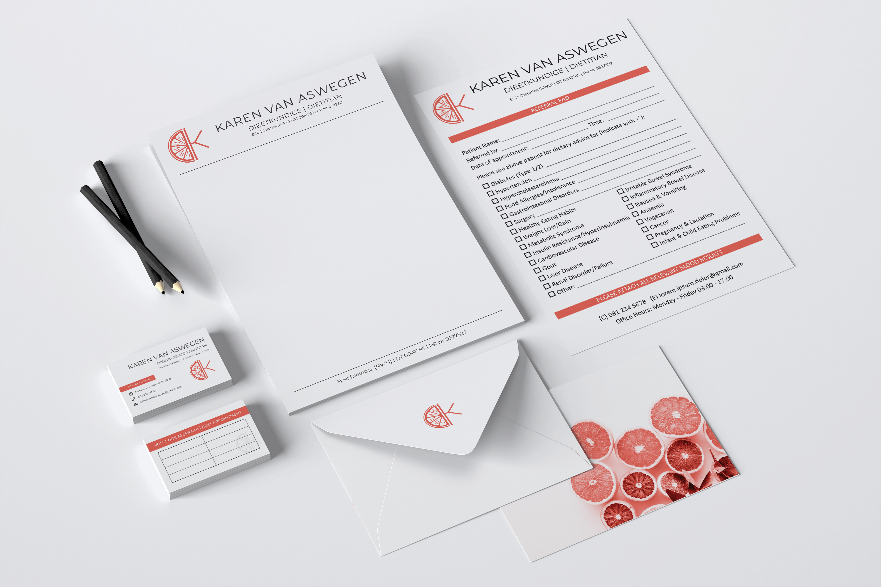 Karen started her own dietetics practice in 2014 when she was 23. At the time she designed her own logo. As a result of the success and growth of her practice, she decided it was time for a new look. The words that I would use to describe this brand are; clean, modern, professional, fresh, and fun.